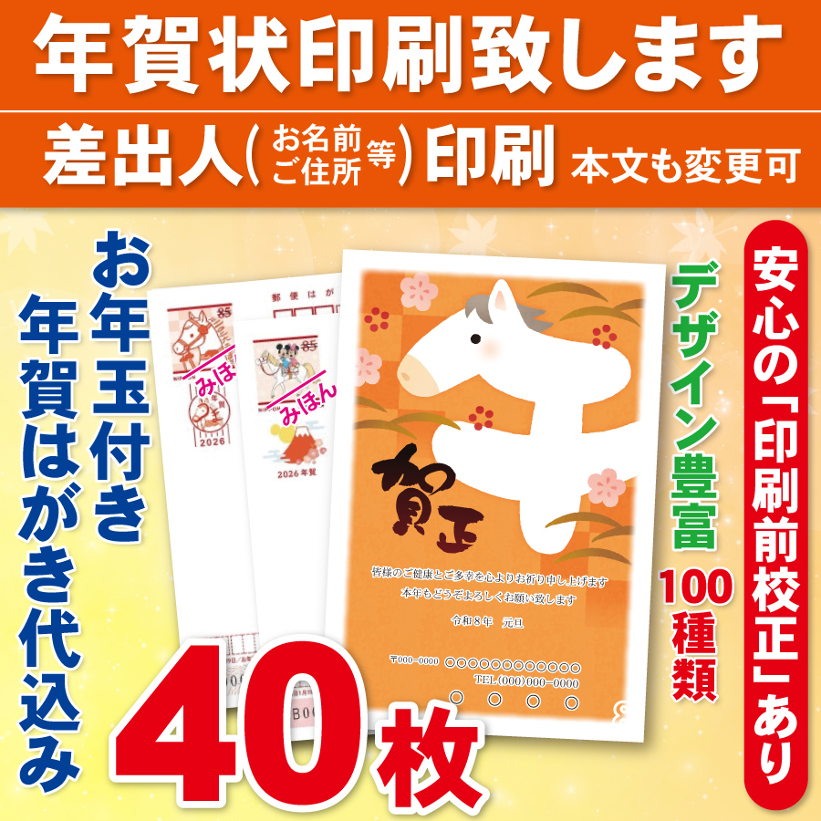 お年玉付き年賀はがき40枚(官製ハガキ) 年賀状印刷致します 差出人印刷 40枚5680円