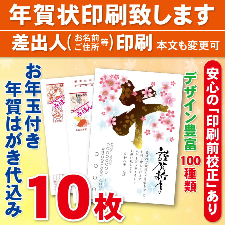 お年玉付き年賀はがき10枚(官製ハガキ) 年賀状印刷致します 差出人印刷 10枚2620円