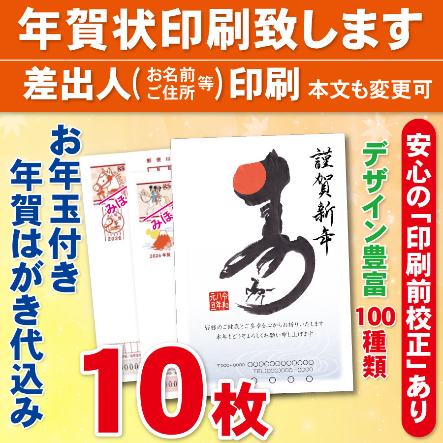 お年玉付き年賀はがき10枚(官製ハガキ) 年賀状印刷致します 差出人印刷 10枚2620円