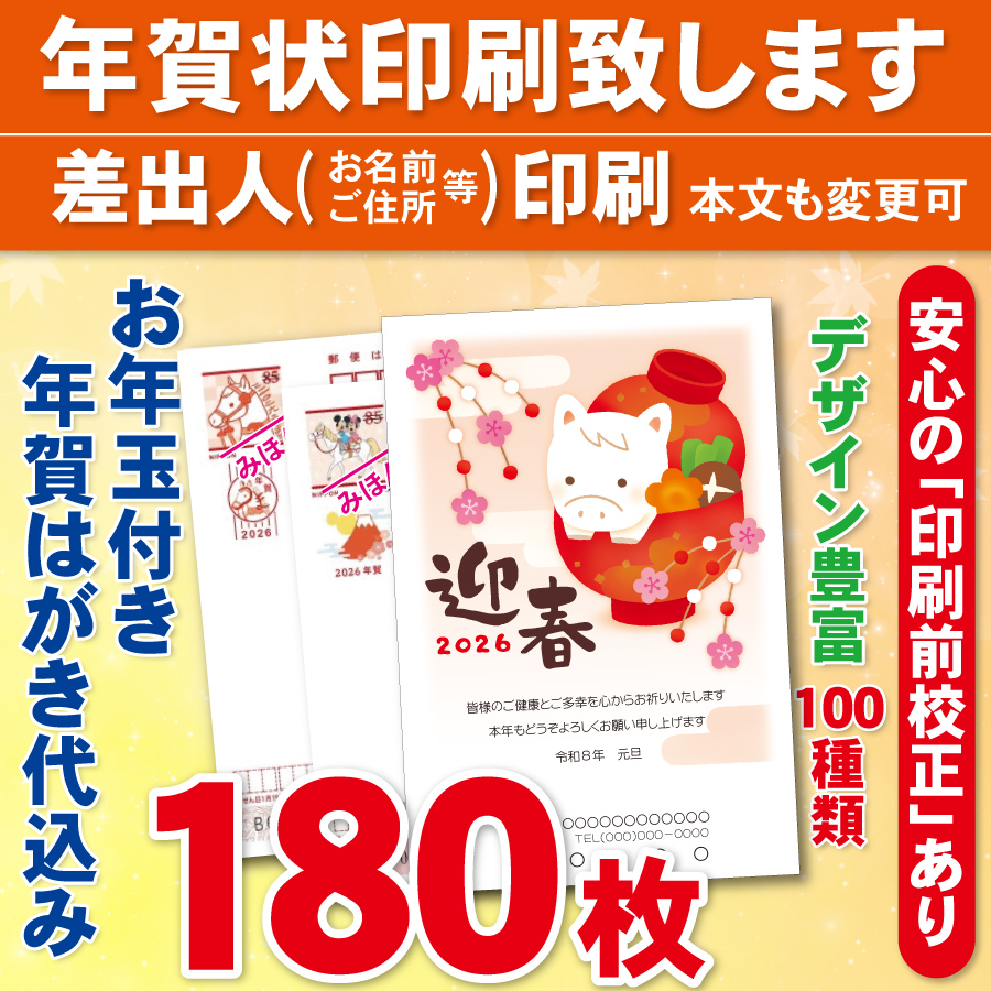 お年玉付き年賀はがき180枚(官製ハガキ) 年賀状印刷致します 差出人印刷 180枚21060円