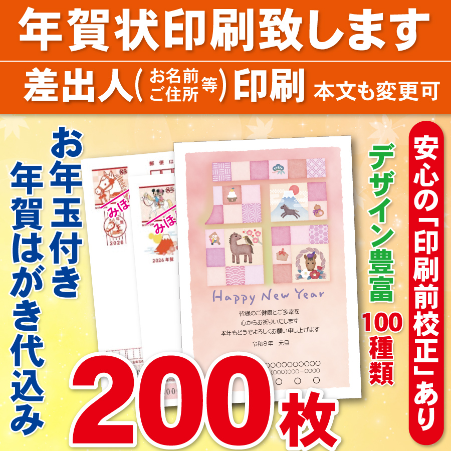 お年玉付き年賀はがき200枚(官製ハガキ) 年賀状印刷致します 差出人印刷 200枚23000円