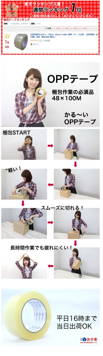 ロジマート OPPテープ NO42 48mm×100M 透明 1ケース50巻 梱包テープ OPP 梱包 引越し 養生 梱包資材 梱包用品 こんぽう