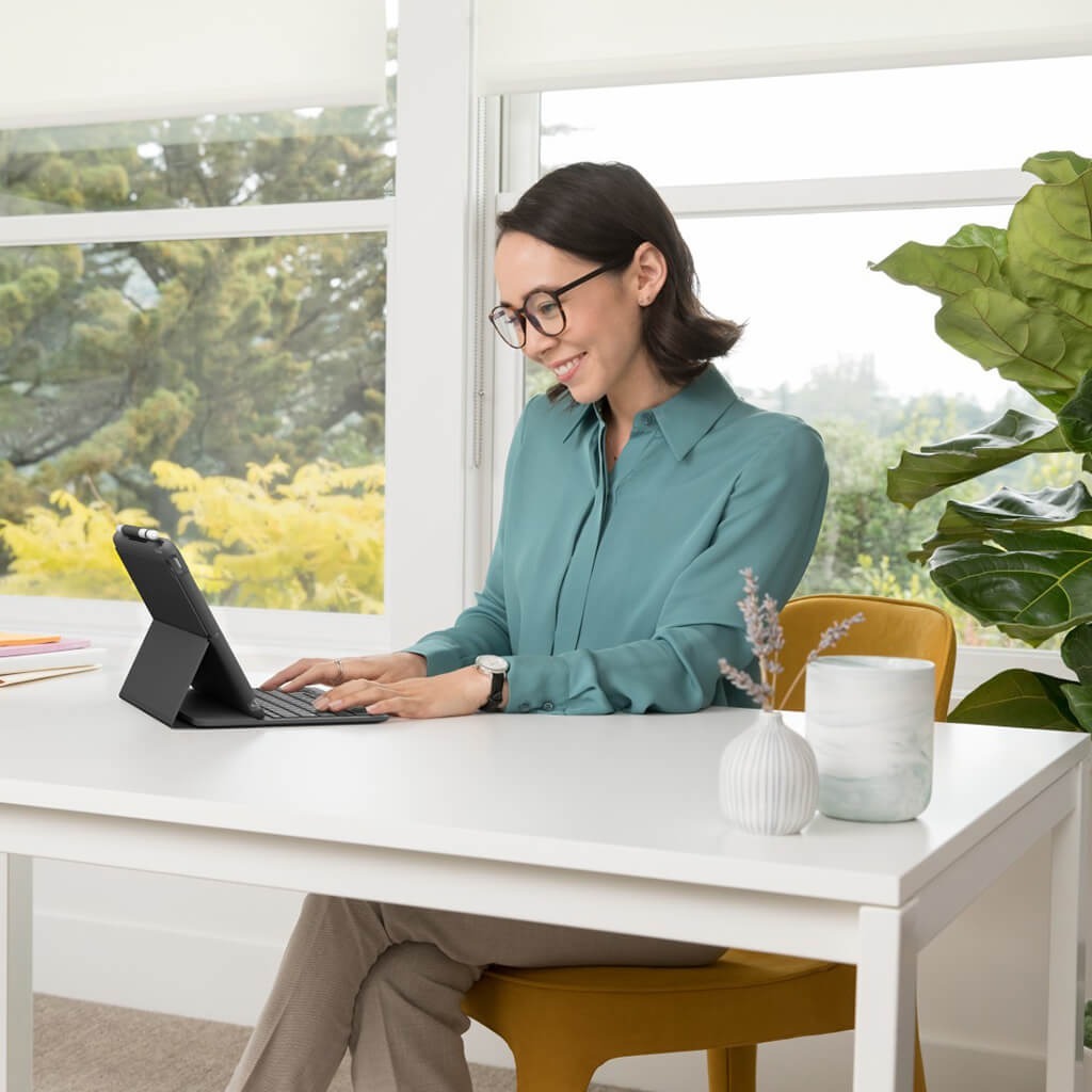 ロジクールよりiPad最新モデル(第9世代)に対応したキーボード一体型ケースが登場※(iPad 第8世代、第7世代も使用可能)。スリムなシルエットが特徴のこのモデルはタイピング、閲覧、キーボード保護に最適なデザインです。 ゆったりとした間隔のキーはノートパソコンのようなキーストロークを可能にし、タイピングモードでは作業に適した58゜の角度でiPadを支え快適なタイピングを実現。 耐水性にも優れており、お手入れも簡単です。折り畳めば表示モードでの使用も可能。お気に入りの動画鑑賞に最適な10°の角度でiPadを支えます。 信頼性の高い低消費電力ブルートゥース通信を採用。Logicool Crayonのホルダー付き。