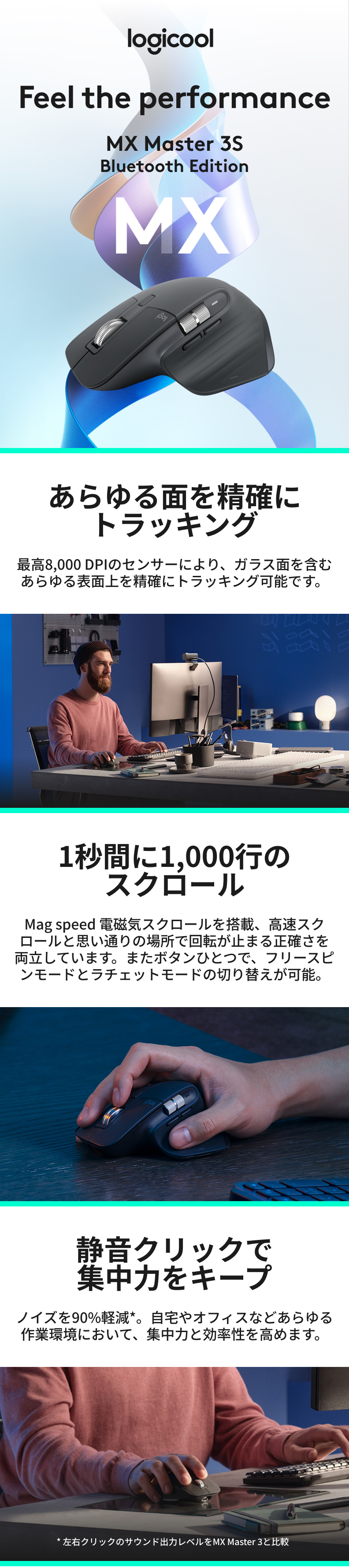 超高速スクロールホイールを搭載したMXシリーズの高機能ワイヤレスマウス MX MASTER 3Sをお求めやすい価格で。MX MASTER 3S Bluetooth Edition登場!