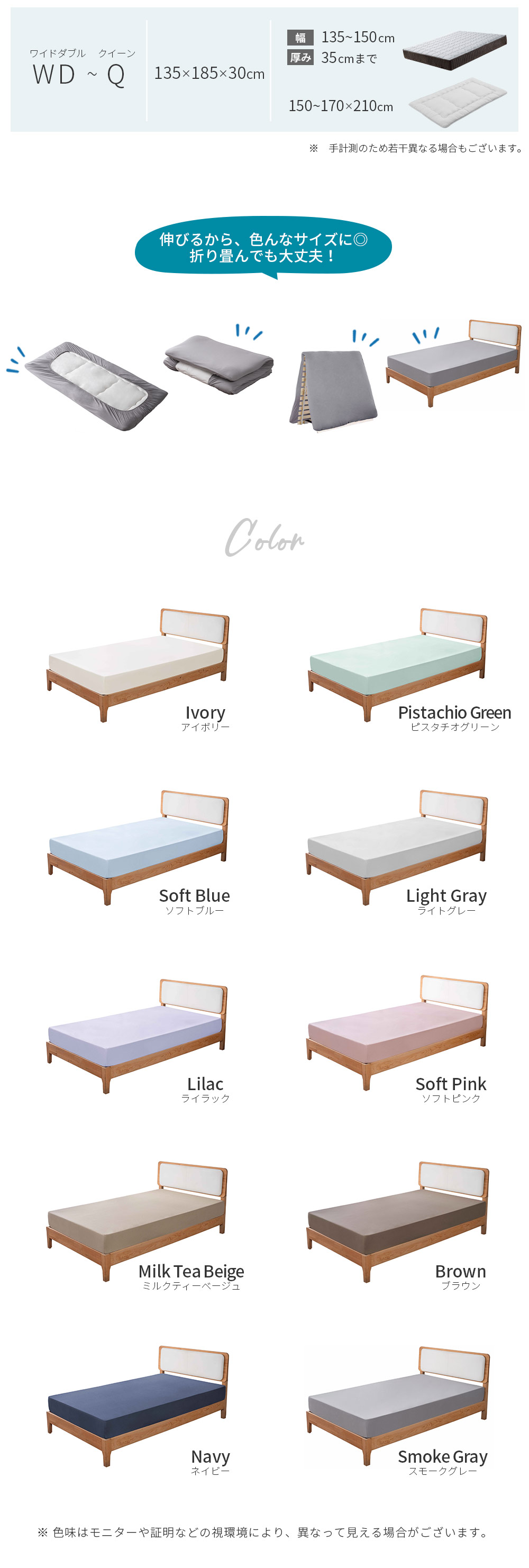 対応マットレスサイズ 幅135-150 厚み35cmまで