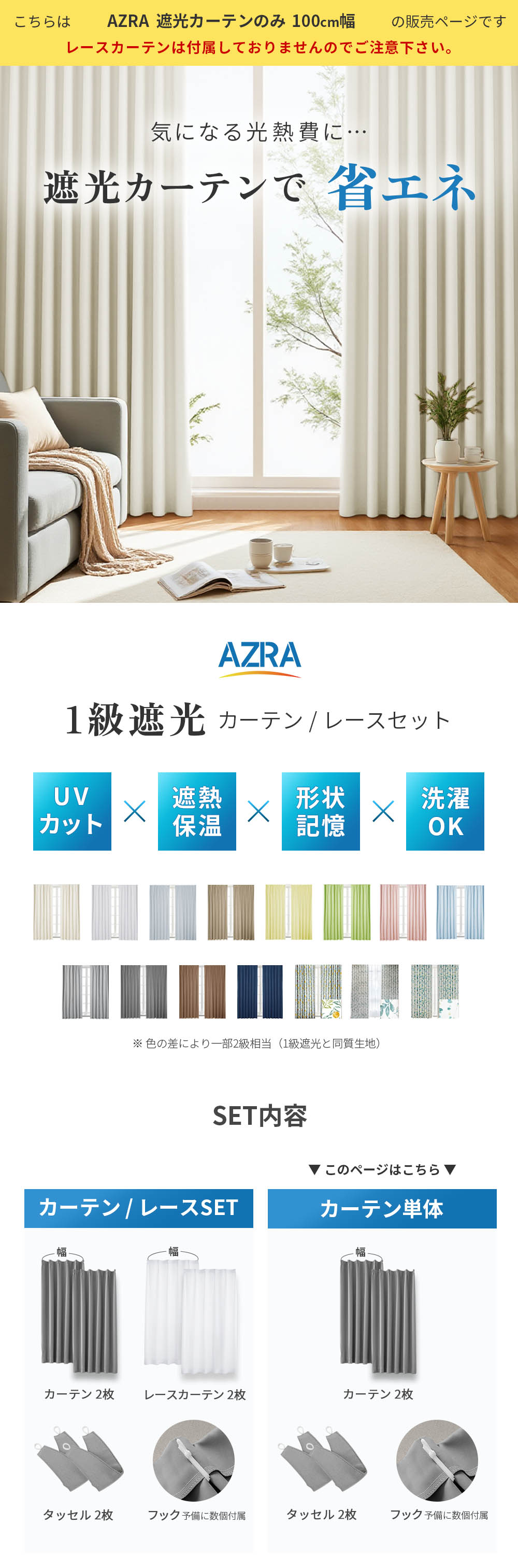 ■ 入数:100cm幅/カーテン2枚・タッセル・フック(カーテン装着済)