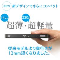 薄さ14mm、230gの重さの「超薄・超軽量」ポータブルブルーレイドライブです。筐体デザインは、Surfaceシリーズや薄型モバイルパソコン、Windowsタブレットパソコンとマッチするオリジナルの設計となります。