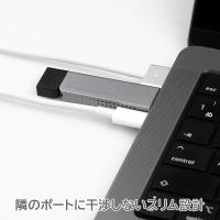 薄くてスリムなUSB Type-C™対応のスティック型外付けSSDです。USBポート同士の距離が近いノートパソコンやUSBハブなどで、USBデバイスを複数使用するときに便利です。外付けSSDを長時間挿したまま使う場合も、隣にACアダプタを接続してパソコンを充電しながら使うことができます。