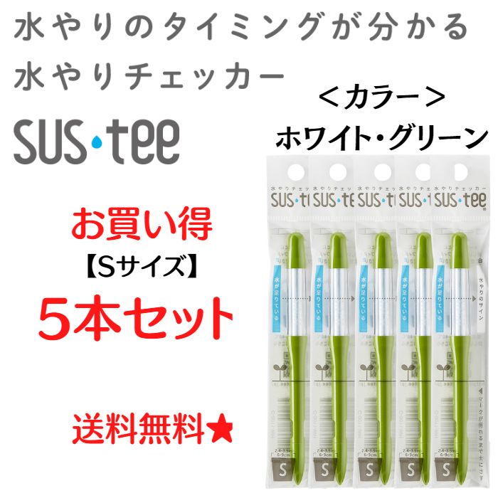 水分計 水やりチェッカー sustee(サスティー)Sサイズ ホワイト グリーン 5本セット 送料無料 キャビノチェ 植物【お買い得セット】お花 プレゼントにも