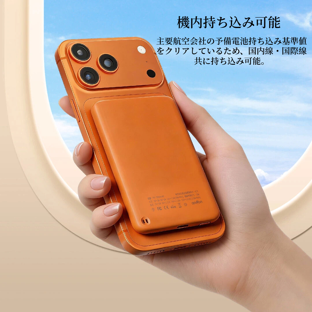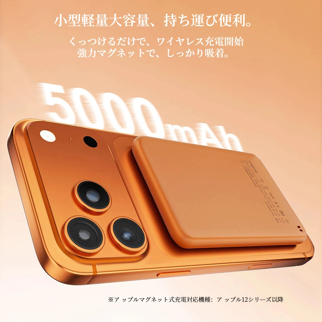 モバイルバッテリー ワイヤレス MagSafe対応 磁気 超軽量 薄型 小型 マグネット 大容量 スマホ充電器 急速充電コンパクトPSE認証 5000mAh