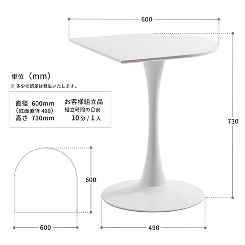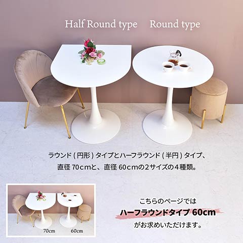 品名:ハーフラウンドテーブル 60cm【ホワイト】
