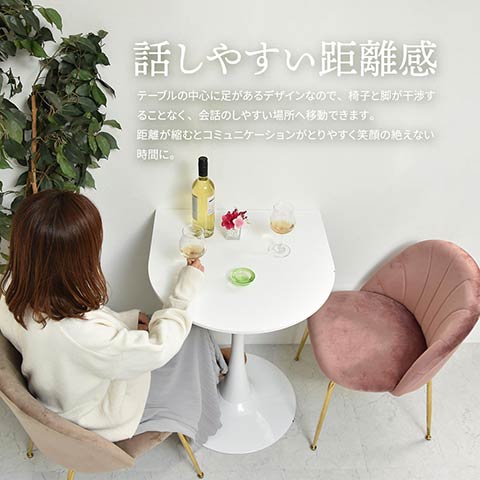 丸みのあるテーブルで二人がお茶を楽しめるサイズ。