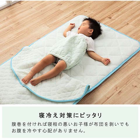 お子様の寝冷え対策に!!肌触りの良いタオル生地の腹巻き。これでお布団をかけなくても大丈夫!どこに寝転がってもおなかを冷えから守ります。 |