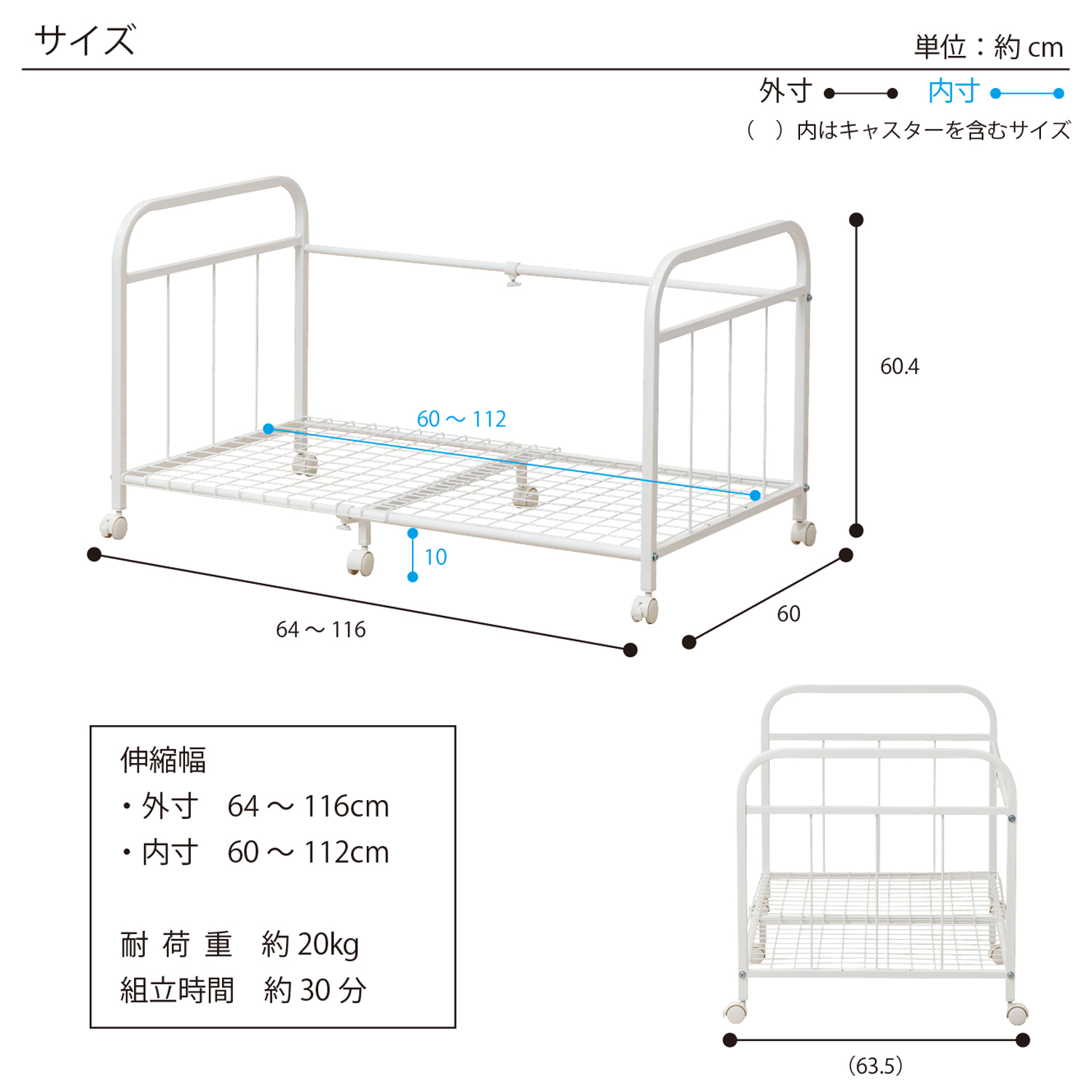 本体:幅64〜116×奥行60×高さ60.4cm