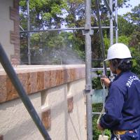 ■外壁コーティング 事例6 外壁改修工事 外壁汚れ防止 光触媒施工 施工箇所: 外構壁(塗装面) 使用溶液: トップコートST、アンダーコートST-P