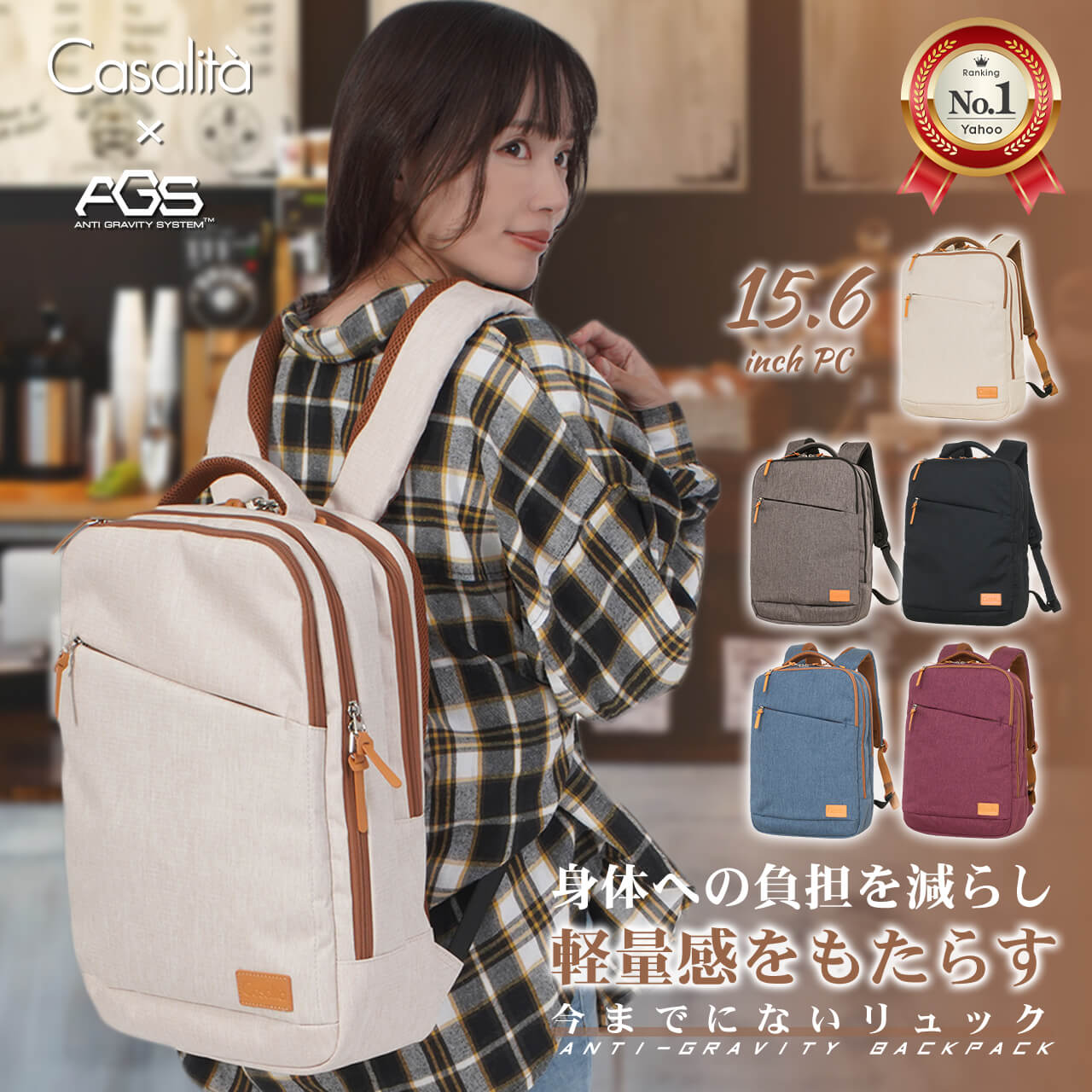 Casalita キャサリータ CL-4970 AGSリュックサック バックパック 18L A4 15.6インチPC 軽量 撥水