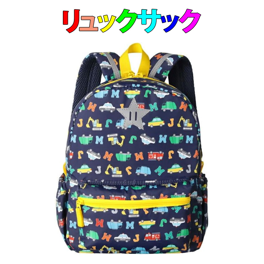 リュックサック ネイビー×車柄 Mサイズ Lサイズ Moujonjon 入園 入学 新学期準備 保育園 プレスクール 幼稚園の説明