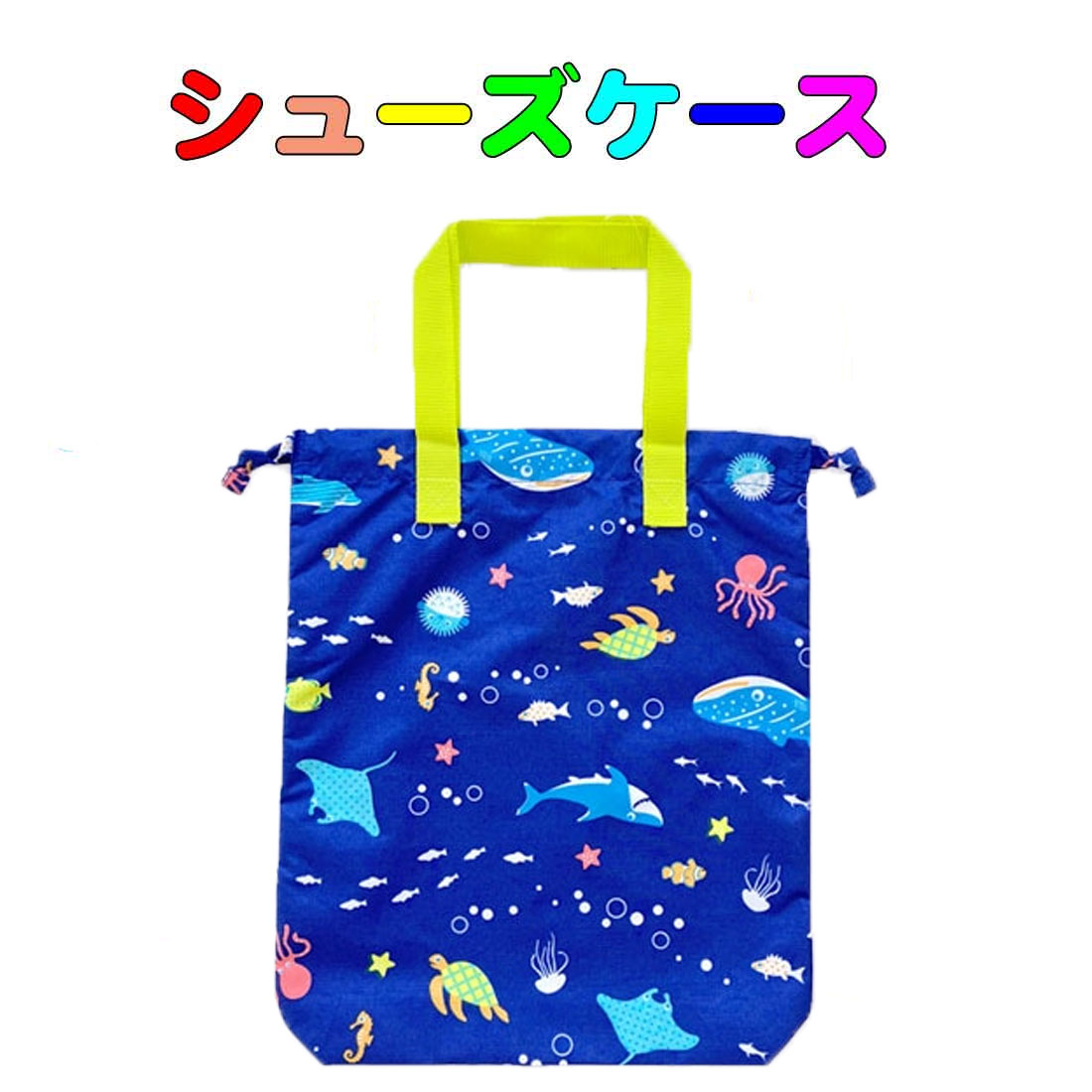 シューズケース ネイビー マリン柄シューズバッグ 上履き入れ 子供用 巾着袋 幼稚園 小学校 入園 入学 通園 通学
