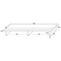 | サイズ | 外寸:W120×D30×H16.5cm 商品重量:約6kg 梱包サイズ: 約125×32×19cm 梱包重量:約8kg 天厚約2.8cm 空間内寸(2ヶ所):約W52×H13.5cm |
