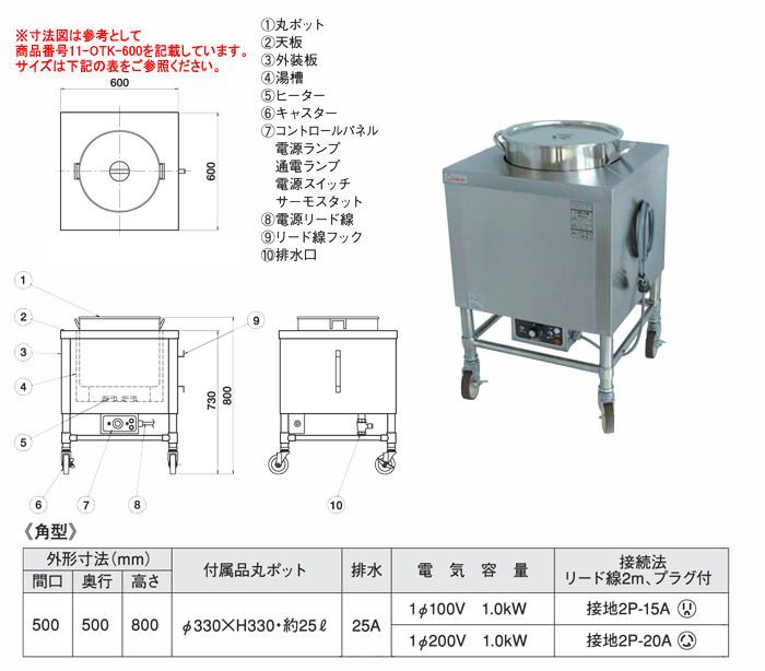 | 角型 | 単相100V 1.0kW | 11-OTK-500 | |