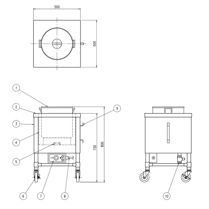 | 電気スープウォーマーカート 厨房機器 ウォーマー 電気保温器 調理機器 電気式 厨房室 キッチン 業務用 レストラン 飲食店 旅館 ホテル 料理 スープ 汁物 味噌汁 バイキング 調理室 キャスター OTK-500 | |