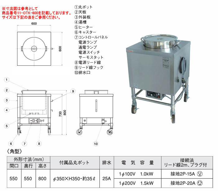 | 商品名 | 電気スープウォーマーカート 角型 単相100V/1.0kW 単相200V/1.5kW |