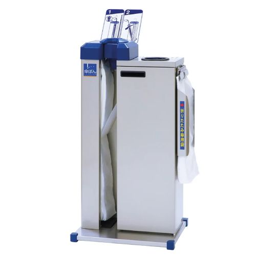 | サイズ | 幅454×奥行374(355)×高さ970(840)mm ※()内はインフォメーションボードを含まないサイズです ■傘袋収納数 ・長傘用:600枚(3束) ・折りたたみ傘用:600枚(3束) ※専用かさ袋は1束200枚です ■傘袋回収容量:約30リットル ■重量:約12.8kg |