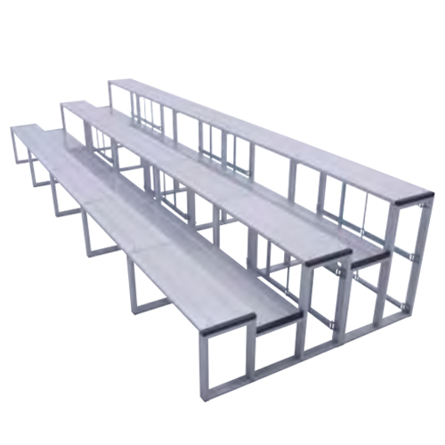| 見やすくゆったり座れる3段5連セットの観覧席! 試合観戦やさまざまなイベントの見物などに便利な観覧席です。 折りたたみ式なのでコンパクトに収納。 軽量で頑丈なアルミ製で、30名程座ることができます。 部材はすべてはめ込み式による組み立てです。 |