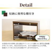 | サイドテーブルやコーナーテーブルにピッタリなサイズのスクエアテーブル。 傷が付きにくく、汚れても拭き取りが簡単なメラミン化粧仕様です。 雑誌、パンフレット、手荷物などを置くのに便利な収納棚が付いています。 1人掛けソファと合わせる小さめなセンターテーブルとしてもご使用いただけます。 |