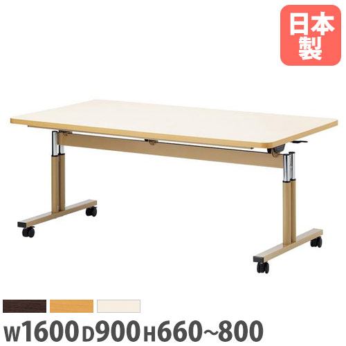 | シンプルなデザインで使い勝手の良い機能が満載です! 体格や用途に合わせて高さを調節できます。 折りたたみ操作レバーで天板フラップが可能です。 キャスター付きなので移動もラクラクです。 |