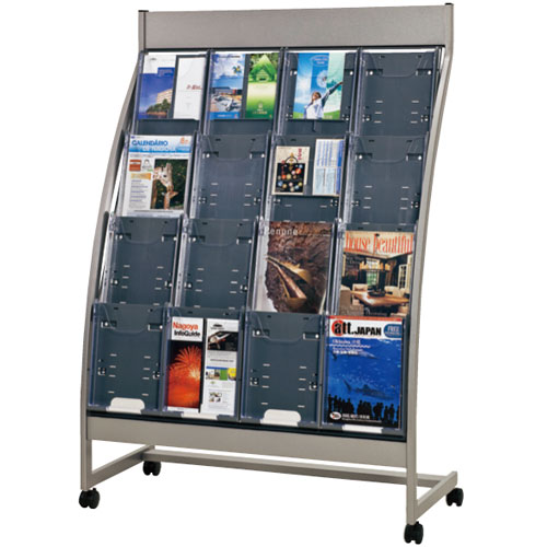 | 安心の日本製商品! カタログやパンフレットを展示出来るスタンドです。 キャスター付きですので移動が簡単にできます。 収納部はA4サイズに対応しています。 |