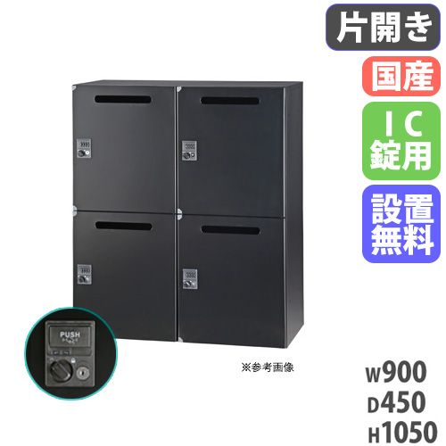 | サイズ | 外寸:幅900×奥行450×高さ1050mm 内寸:幅410×奥行400×高さ棚上125/棚下330mm メール開口サイズ:幅245×高さ30mm 重量:40.4kg |