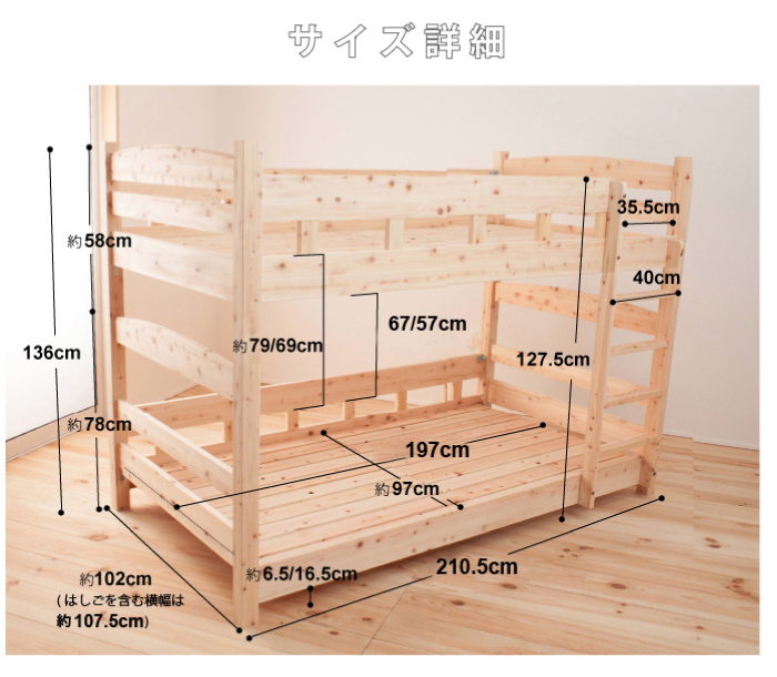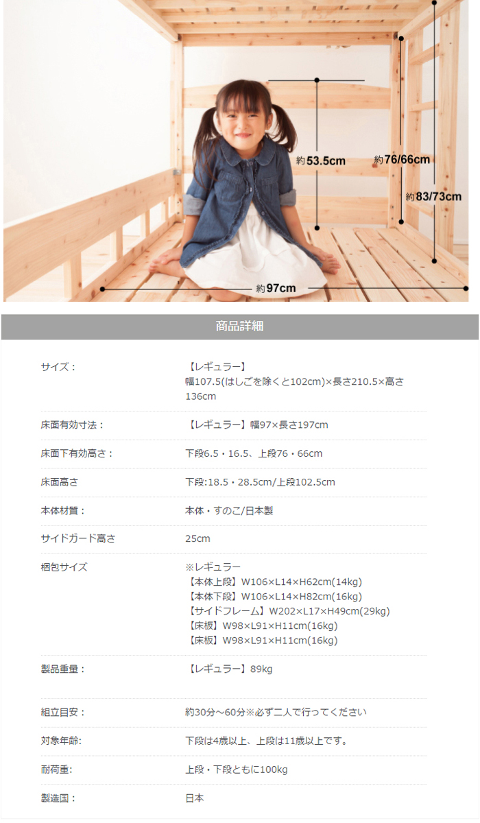 | 商品名 | 国産ひのき二段ベッド シングル |