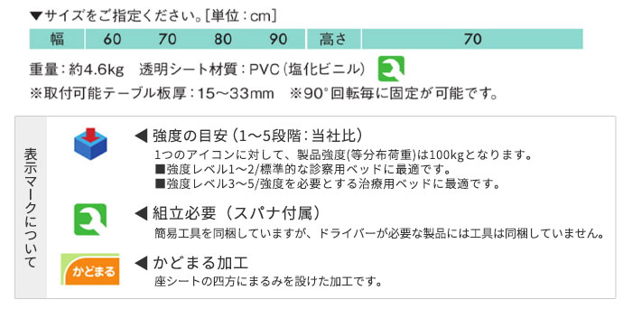 | 材質 | 透明シート材質:PVC(塩化ビニル) |
