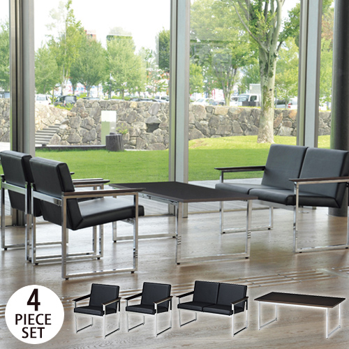 | 合成皮革張りの高級感ある応接セットです! シンプルで高級感のあるデザインが、応接室や役員様用の家具としてマッチします。 ブラック×スチールの色合いがとてもお洒落です。 オフィスや学校、施設で活躍しています。 |
