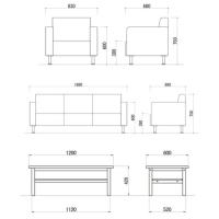 | サイズ | 応接ソファ1人掛け:幅830×奥行680×高さ750(座面高380)mm 応接ソファ3人掛け:幅1880×奥行680×高さ750(座面高380)mm センターテーブル:幅1200×奥行600×高さ420mm |