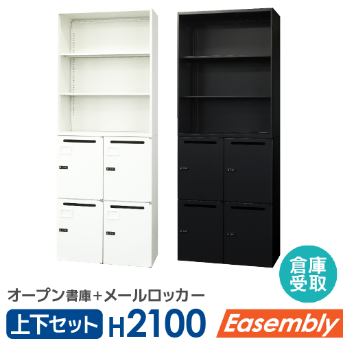 | サイズ | 【オープン書庫】 外寸:幅800×奥行400×高さ1050mm 重量:23kg 耐荷重:40kg ※棚板1枚あたり 【メールロッカー】 外寸:幅800×奥行400×高さ1050mm 投函口:幅約280×高さ約21mm 重量:42kg |