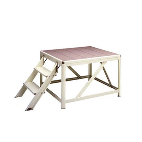 | 錆びることなく水に強い! アルミ製なのに耐荷重強度も抜群です。 階段は安全に昇降できるように、滑り止めライン入りで幅広設計です。 踊場は滑り止め加工を施しています。 天板四隅には安全な樹脂製コーナーカバーを装着しています。 学校や工場など様々な場所で活躍します。 |