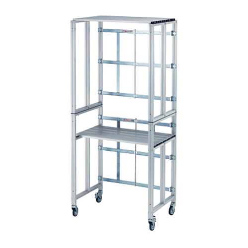 | 特記事項 | ※こちらはアルミ製プロジェクター台1台の販売ページです。 ■セット内容■ ステージ脚部H1000キャスター付:1台、ステージ脚部H1000:1台、天板900×600:1枚、中間天板:1枚、エンドキャップ600:2本 |