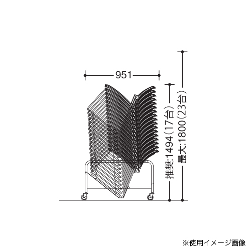 | サイズ | 幅880×奥行550×高さ515mm スタッキング高:推奨1494mm(17台)、最大積載1800mm(23台) |