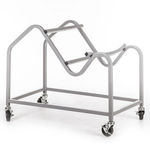 スタッキングチェアを25脚まで積載できる台車です。 大型のキャスター付きでチェアの運搬がしやすいです。 4つのキャスター全てにストッパーが付いています。使用時はキャスターの動きをロックできます。
