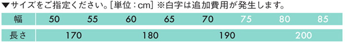 | サイズ | ※白字(特注サイズ)は商品代金とは別途オーダー料金が必要です。御見積りを希望の方はお問い合わせください。 |