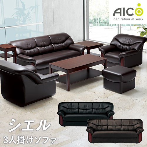 | 主張を忘れない高いデザイン性が魅力! 重厚感のあるビニールレザー張りの3人掛けソファーです。 ロビーや応接室、役員室などで活躍します。 |