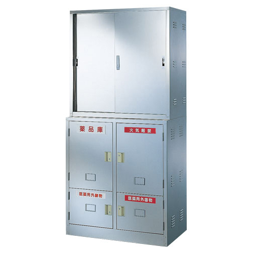 法人限定 引戸+片開き薬品庫 セット ステンレス 薬品庫 薬品保管庫 キャビネット 備品庫 書庫 鍵付き 収納 会社 学校 病院 実験室 大学 医療施設 BER-SYS52