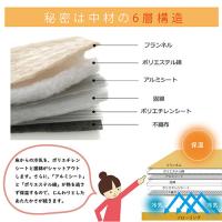 | 仕様 | 表地=ポリエステル100%(フランネル) 裏地=ポリエステル100%(不織布滑り止め) 中材=アルミシート、ポリエステル100%わた+ポリエステル100%固わた、ポリエチレンシート2mm ●手洗い可 液温は40℃を限度とし、手洗いができる |