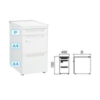 | 洗練されたオフィスを実現するシャープなデザインのFUデスクシリーズ用脇机です。 全段ラッチ機構付きで、A4引出しにはセルフクロージング機構付きです。 作業スペースの拡張や収納に役立ちます。 |