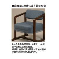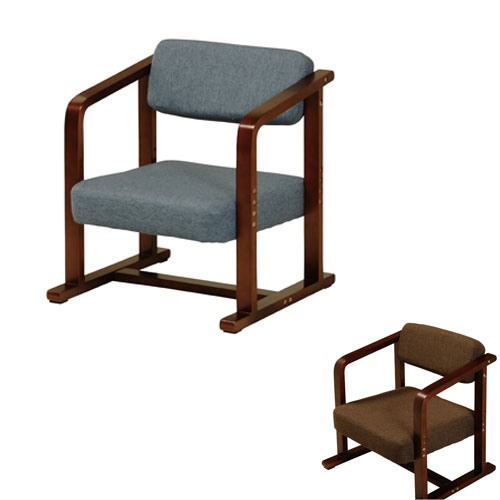| 立ち上がり、着座が楽な「ちょこっとイス」です。 ブラウンとネイビーの落ち着いたファブリックは室内に溶け込みやすいカラーです。 年輩の方も、足腰への負担がかからず楽に座ることが可能です。 |