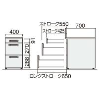 | サイズ | 外寸:幅400×奥行700×高さ720mm 引出内寸:(上段)幅328×奥行435×高さ78mm (中段)幅318×奥行540×高さ265mm (下段)幅318×奥行635×高さ265mm 天板厚:29mm 重量:(ホワイト)約32kg (その他)約32.5kg 耐荷重/天板:約150kg |