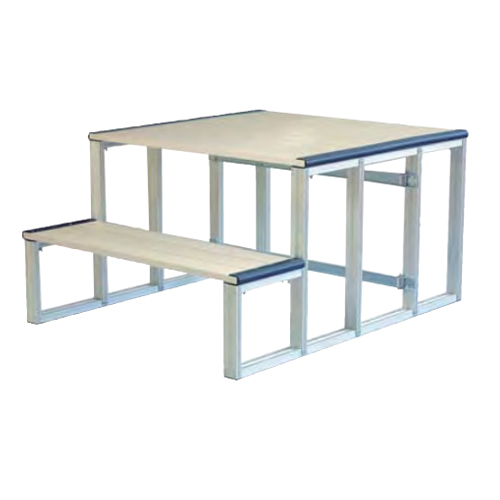 | 簡単組立・簡単撤収!コンパクトに整理できる号令台 工具不要の簡単組立。軽量で頑丈な折りたたみ式アルミ製朝礼台です。 狭いグラウンドから体育館まで幅広くお使いいただけます。 部材はすべてはめ込み式による組み立てです。 |