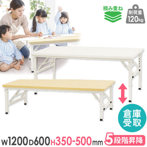 | 商品名 | 折りたたみ昇降テーブル 幅1200×奥行600×高さ350〜500mm 倉庫受取限定 |
